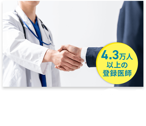 21年以上営む医師紹介業で培ったノウハウを活用し、最適な候補者をご提案。全国に事業拠点があり4.3万人以上の登録医師、1.7万件以上の医療機関とのネットワークがあります。