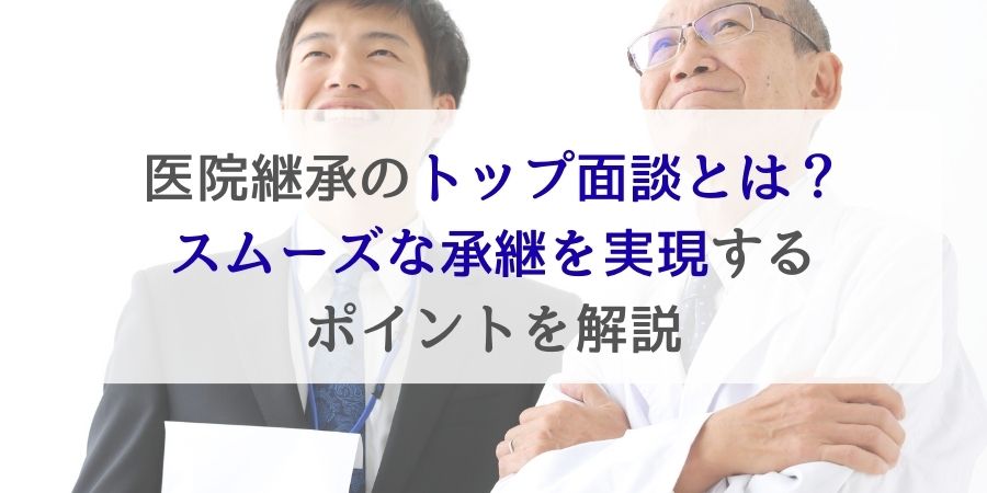 トップ面談は単なる顔合わせではありません。お互いの医療理念や人柄を確認し、信頼関係を築いて医院継承の成否を決める重要な場です。...
