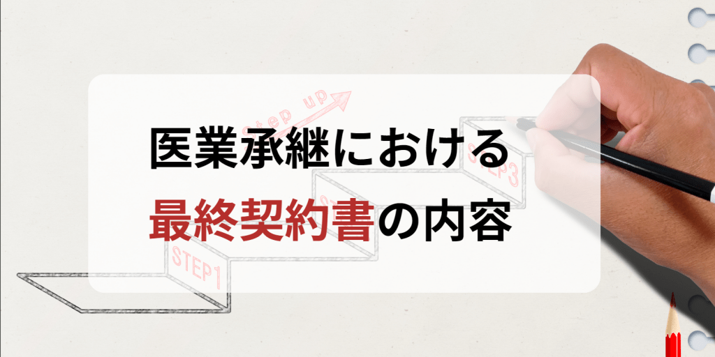 本記事では、医業承継における最終契約書の役割や基本的な内容について解説した上で、実際の最終契約書がどのように書かれているのかについて、医療法人と個人医院等の場合にわけて解説します。